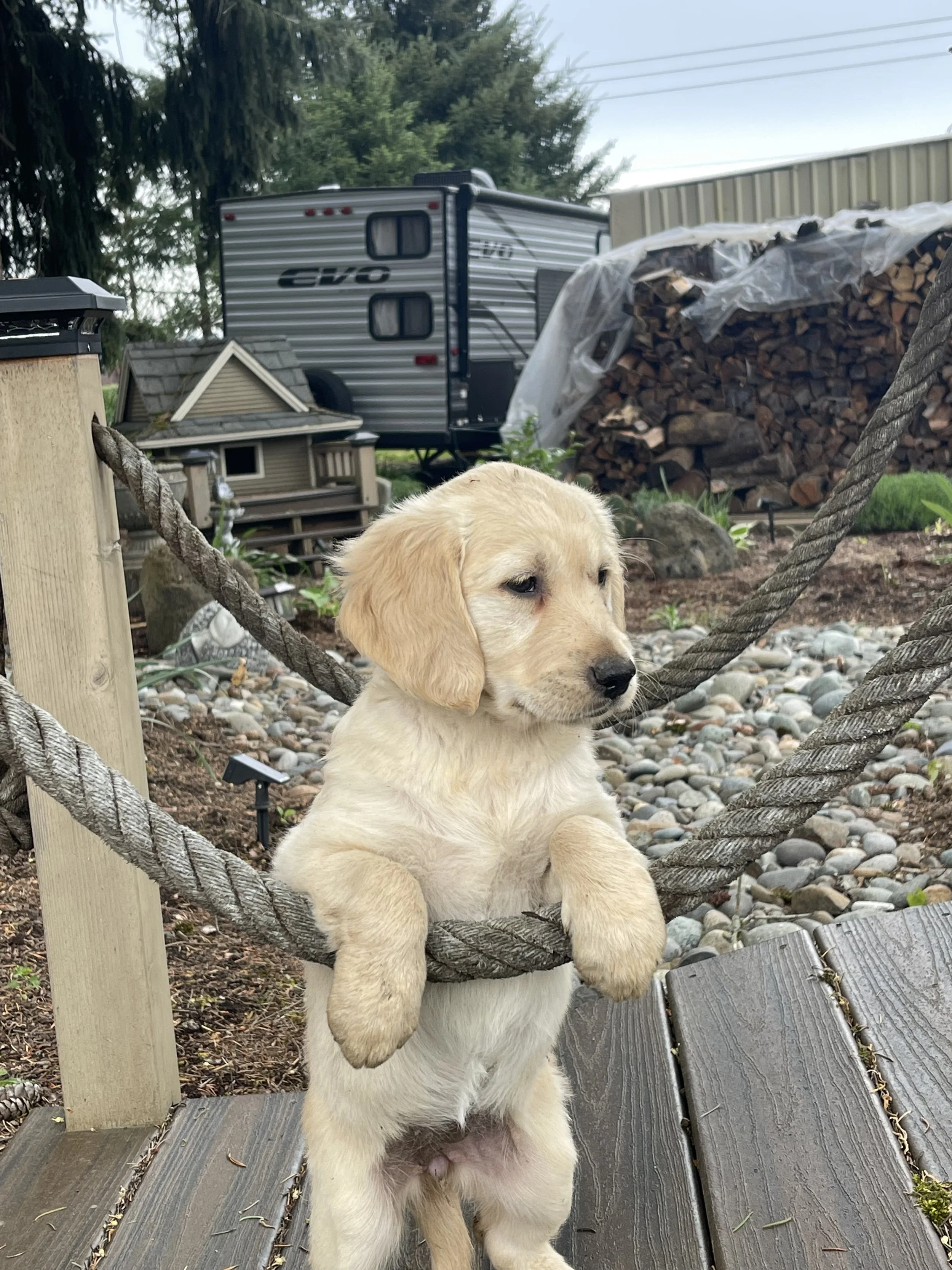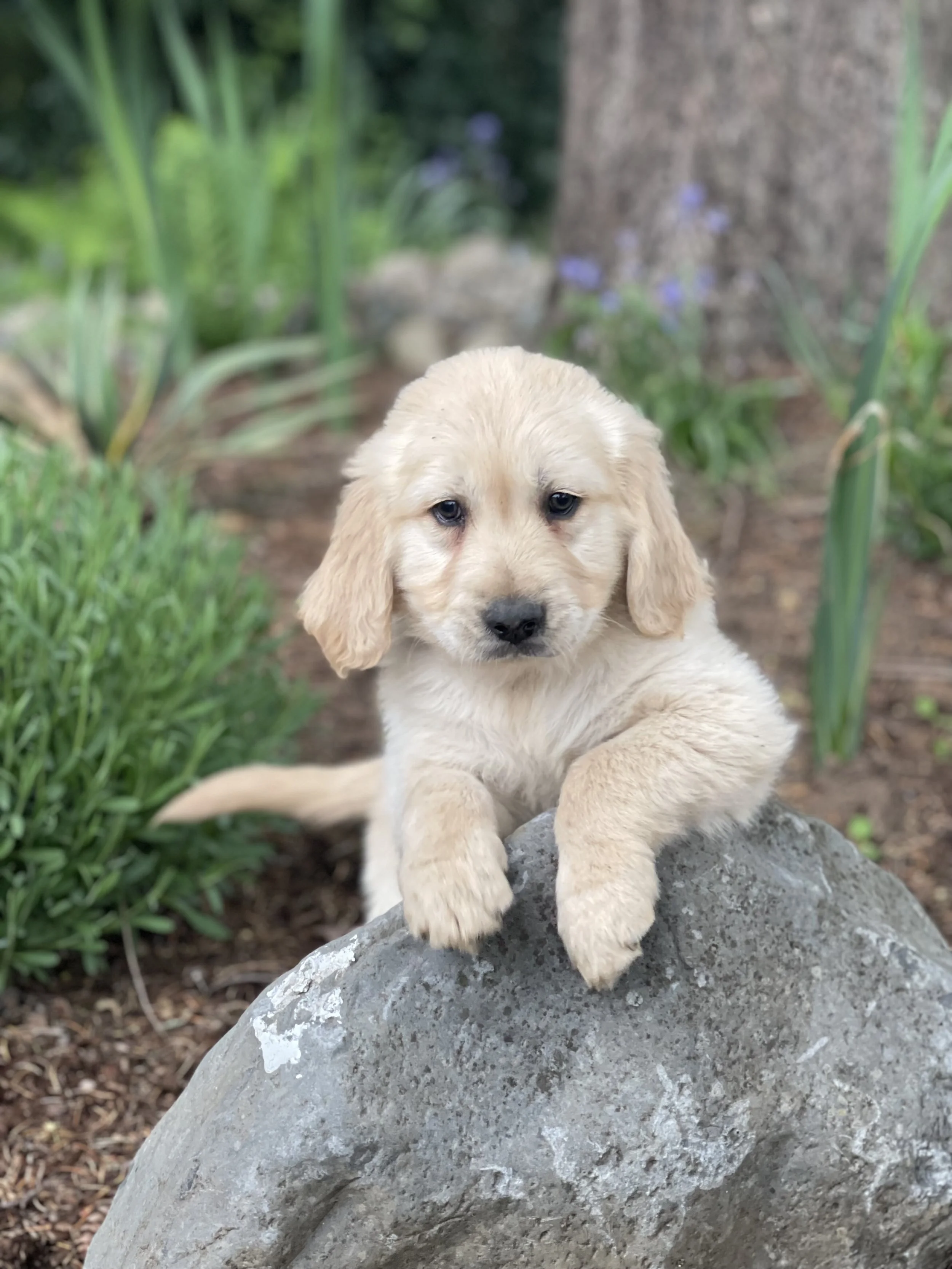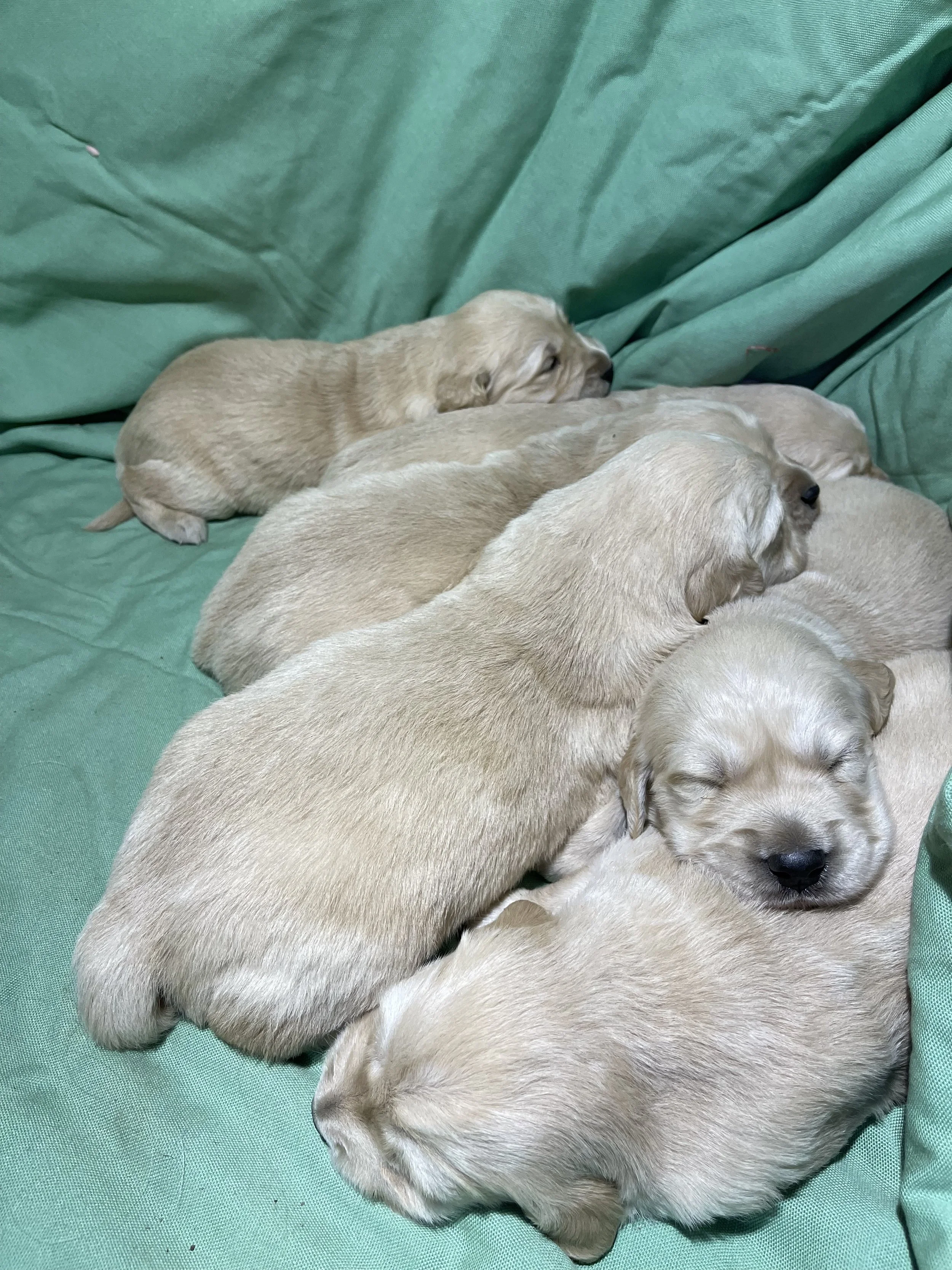 This litter is extra special as it’s our first litter of English Cream Golden Retriever puppies, thanks to our handsome new dad on the farm! Are you interested in adopting one of our sweet puppies available? Our adoption rate is $1,000.